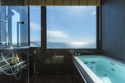 - 【オーシャンビューの客室展望風呂、初夏の日本海を】